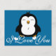 Cute chubby black and white penguin graphic with a blue background that you can change the colour with a fancy text saying "I Love You" in white with hearts. Great for any occasions and especially Valentines for that special someone in your life.