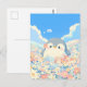 Brighten your correspondence with this heart-melting scene featuring an adorable, chubby penguin nestled among a sprawling field of soft pastel blossoms. The digital illustration is rendered in a gentle, painterly aesthetic, showcasing a vibrant palette of peach, coral, mint, and sky blue. Against a brilliant azure sky, towering and fluffy white clouds create a whimsical, airy atmosphere. The penguin’s sweet, contented expression—complete with a tiny blossom tucked by its ear—evokes a sense of peaceful springtime joy. This postcard serves as a beautiful canvas for a heartfelt handwritten message or a serene mini-print to accent your workspace gallery wall. Whether it’s traveling through the mail to a loved one or pinned to your inspiration board, it brings a touch of calm to any setting.