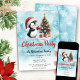 Cute Penguin in Santa Hat Blue Festive Christmas Invitation