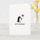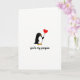 This sweet card shows a cute penguin standing on a plain white background, keeping the focus on a sweet moment. The penguin is black and white with a yellow-orange beak and matching webbed feet. It holds a bright red, heart-shaped balloon on a thin stick, and the penguin’s calm, gentle expression makes the scene feel caring. The simple setting makes the heart balloon stand out as the main sign of love and closeness ❤️. Near the bottom, the words “you’re my penguin” appear in a casual handwritten in black, centered under the penguin.
