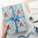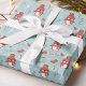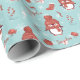 Cute penguin wrapping paper personalised with a name or any custom text. Great gift wrap for Christmas or the Holidays, featuring cute animals and winter illustrations in blood orange or soft red colour and aqua green.