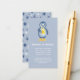 Add to your new baby's library by requesting books for your baby shower with this adorable stars and penguin book request enclosure card. This books for baby card features an adorable hand painted baby penguin holding a yellow star and a cute repeating blue and white star patterned background. Cute winter star themed design for your penguin baby shower or baby sprinkle.