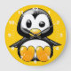 Wall clock with a picture of a cute penguin on a yellow background.