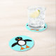 This awesome paper coaster features a cute penguin character with a white tummy, big blue eyes with black pupils and cute orange feet and beak. This charming little winter bird is sure to delight children and adults. The penguin sits on an icy pale blue background to remind him of his chilly Arctic home.