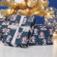 This navy blue and pink Christmas wrapping paper features a funny Xmas pattern of penguins in pink apparel celebrating the winter holidays. Cute penguins decorate Christmas trees, meet family and friends, and go ice skating, so this design is fun for festive gift wraps.