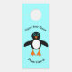 This awesome door hanger features a cute penguin character with a white tummy, big blue eyes with black pupils and cute orange feet and beak. This charming little winter bird is sure to delight children and adults. The penguin sits on an icy pale blue background to remind him of his chilly Arctic home.