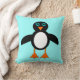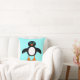 This awesome pillow features a cute penguin character with a white tummy, big blue eyes with black pupils and cute orange feet and beak. This charming little winter bird is sure to delight children and adults. The penguin sits on an icy pale blue background to remind him of his chilly Artic home.