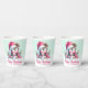 These pink and mint green Christmas paper cups with a cute penguin, a tiny snowman, and festive greenery features a Merry Christmas saying and a template for your Family name to personalise them for the Xmas party.