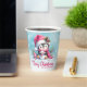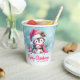 These pink and snowy blue Christmas paper cups with a cute penguin, a tiny snowman, and festive greenery features a Merry Christmas saying and a template for your Family name to personalise them for the Xmas party.