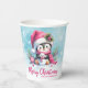 Cute Penguin Pink and Snowy Blue Merry Christmas Paper Cups