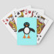 This awesome deck of playing cards features a cute penguin character with a white tummy, big blue eyes with black pupils and cute orange feet and beak. This charming little winter bird is sure to delight children and adults. The penguin sits on an icy pale blue background to remind him of his chilly Artic home.