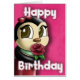 A cute penguin peeking from the side of the card with a rose in her hand. Shown on a pink background. Above and below her says, "Happy Birthday". This theme can also be found on birthday gift bags for kids on my store. Thanks for stopping by!