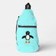 This awesome sling bag features a cute penguin character with a white tummy, big blue eyes with black pupils and cute orange feet and beak. This charming little winter bird is sure to delight children and adults. The penguin sits on an icy pale blue background to remind him of his chilly Antarctic home.