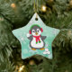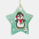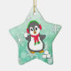 Cute Penguin Throwing Snowballs Christmas Ceramic Ornament