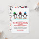 Three cute penguins in woollen caps of primary colours are slip sliding around in this bright and happy ice skating themed birthday party invitation. On the back a collage of funny penguins slide around too!