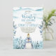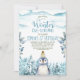 Sweet boy's winter onederland birthday invitation featuring a cute penguin, winter cap, a calligraphy text heading, and a winter landscape. This boy's penguin winter onederland birthday invitation is sure to set the scene for a boy's onederland first birthday party.