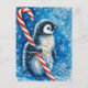 Cute Penguin with Candy Cane Christmas Postcard
