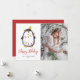 Happy Holidays! Send festive cheer this holiday season with this customisable photo holiday card. It features a whimsical script and an illustration of a cute penguin with Christmas lights. Personalise by adding your details. This custom penguin holiday card is available in other cardstock.