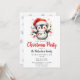 Create cute Christmas Party invitations featuring a cheerful penguin in a red Santa hat holding Christmas lights. This modern Xmas invite is designed on a white background and the backside is decorated with blue snowflakes. The template makes it easy to customise the text for the Family name, date and time, address, RSVP and party dress code. If you'd like to make more changes, you can use the Zazzle design tool.