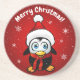 Use your own text to customise these round coasters featuring a funny penguin cartoon with Santa hat and create a truly unique Xmas favour.