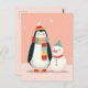 Cute Penguin with Snowman Pastel Pink Christmas Postcard