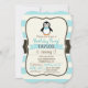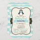 Cool, retro, colourful kid's Cute Penguin with Turquoise Bowtie design on white stripes, striped pattern with vintage feel. Perfect gift for baby, toddler, kids, children, teens, or adults! Personalised the design by adding a child's name or custom text. Visit our store, Birthday Party House, for more great customisable boy and girl products!