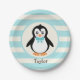 Cute Penguin with Turquoise Bowtie Paper Plate
