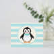 Cool, retro, colourful kid's Cute Penguin with Turquoise Bowtie design on white stripes, striped pattern with vintage feel. Perfect gift for baby, toddler, kids, children, teens, or adults! Personalised the design by adding a child's name or custom text. Visit our store, Birthday Party House, for more great customisable boy and girl products!