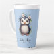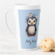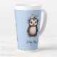 Cute Penguins Blue Custom Name & Initials Latte Mug
