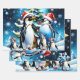 Cute penguins in a cheerful cartoon style wrapping paper sheet