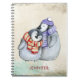 A spiral notebook with an adorable illustration of a penguin couple cuddling together. Wearing winter scarves and hats. Set on a cream coloured vintage background with