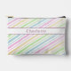 A cute personalised pencil pouch featuring your name and colourful watercolor pastel stripes. The perfect zipper case for storing your art supplies for back to school or any time of year.