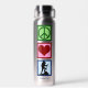 Peace Love Hiking water bottle for a hiker. Cute monogram gift featuring a peace sign, heart, and a person climbing a mountain.