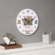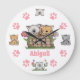 This wall clock features cute cats and kittens with pink paw prints. It can be personalised with a name or any text that you wish to add.