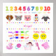 Add a special custom touch to the bedroom or nursery of your little girl with this adorable learning poster. Poster has numbers 1 to 10, five animals, several colours, a happy face and a sad face, and icons representing objects. Add a first name for a personalised touch.