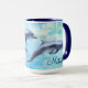 This beautiful mug features watercolor painted dolphins over an ocean background. Easy to personalise with a name for a thoughtful gift for the dolphin or marine animal lover!