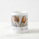 Modern and stylish custom coffee mug design features a photo collage of four (4) favourite photos with a simple and minimal loving pet quote in typewriter writing that you can customise. The default wording includes a loving and sweet sentiment that says: Some things just fill your heart without trying" with cute paw print accent. Note, the dark charcoal grey text colour can be modified.