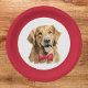 These Golden Retriever Christmas paper plates are the perfect addition to any family dinner. This design is complete with an adorably cute golden retriever watercolor graphic, as well as a red bowtie. Enjoy the holiday!