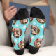 These cute pet photo socks feature your own pet photo in an offset pattern on a turquoise blue background. Add your own dog photo or cat photo! Perfect for the pet lover and sock lover and they make great custom Christmas stocking stuffers!