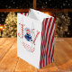 These two personalised and stylish glossy gift bags were simply ideal to carry wedding gifts wrapped in the matching gift wrapping paper. The customised text printed on the gift bags was precisely as ordered and while the photo does not quite do the gift bags justice, rest assured they look fabulous. The gift bags were securely packaged for safe transit arriving undamaged and it was a speedy turnaround from ordering to delivery. Thank you Zazzle for another 5-star transaction in every way!