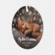 Did you have a baby this year? Add a memory to your tree with this cute keepsake ornament featuring a modern and simple design with snowflakes and the message, "My First Christmas" in chalk script along with your baby's name and the year, over your favourite newborn photo. Add the same photo to both sides or a different one on each side. A gender neutral design that is great for a boy or a girl. This ornament also makes a great gift for close friends and family.