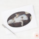 cute picture of puppy cuddling oval sticker