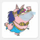 cute pig belly dancer cartoon character square sticker