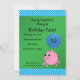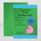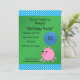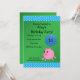 5" x 7" invitation with cute pig greeb background, with blue white polka dots stripe and a faux glitter blue scallop circle to change the birthday year for 1st, 2nd, 3, 4, 5, 6, 7, 8, 9, 10, 11, 12, 13 14, 15, 16, 17, 18, 19 20, 30, 40, 50, 60, 70, 80 ,90