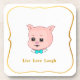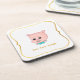 Cute Pig Cartoon & Calligraphy on White Coaster