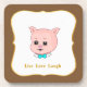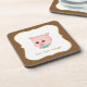 Cute pig cartoon with personalised positive words on white and brown background Plastic Coaster.