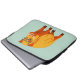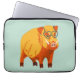 Funny pig laptop sleeve with an illustration of a digitally painted boar with big tusks and heart shaped eyeglasses in bright yellow, orange and blue colours.