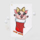 A whimsical hand-drawn illustration of a cheerful cartoon piglet peeking out from a festive red Christmas stocking. Featuring big sparkling eyes, rosy cheeks, and a bright yellow bow, this playful artwork is inspired by classic children’s book styles. The knitted stocking texture with fluffy white trim adds warmth and holiday charm.