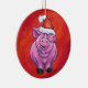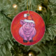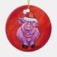 Cute Pig in Santa Hat on Red Ceramic Ornament