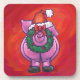 Cute Pig in Santa Hat on Red Coaster